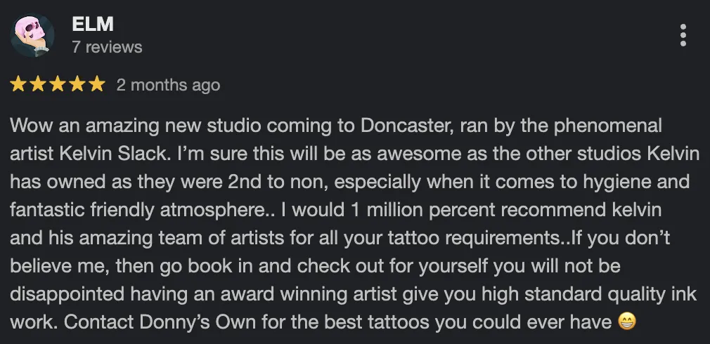 You will be warmly welcomed to one of Doncaster's most renowned tattoo studios - Donny's own Tattoo Studio